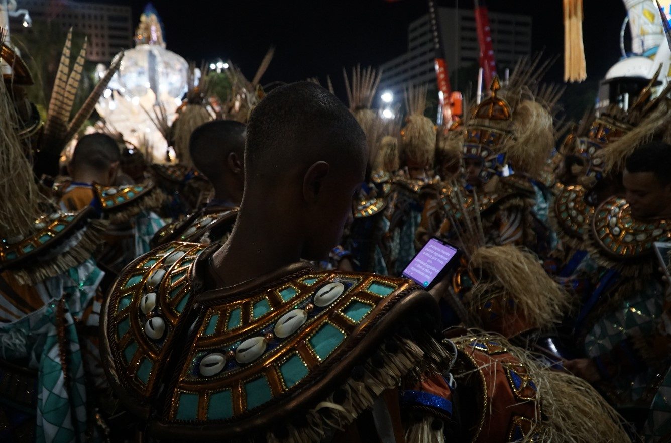 La concentração -concentración- es, como también indica su nombre, el lugar donde se concentran las decenas de carrozas y los miles de componentes de las escuelas, justo antes de cruzar los 550 metros del Sambódromo. Y los llenan. Así que cada una de las doce escuelas principales necesita centenas de metros de calle para extender todo lo que tienen preparado para el gran desfile que llevan organizando casi un año. Se corta al tráfico parte de la amplia avenida perpendicular al Sambódromo hacia ambos lados para que esperen a la vez dos escuelas. La que desfila y la siguiente. Todo va al milímetro, o al minuto, más bien, porque deben acabar su presentación a tiempo. Las miles de personas de todas las edades que esperan en la concentración durante horas tienen una mezcla de ilusión, alegría, nervios, cansancio, sudor y sobre todo, muchas ganas.